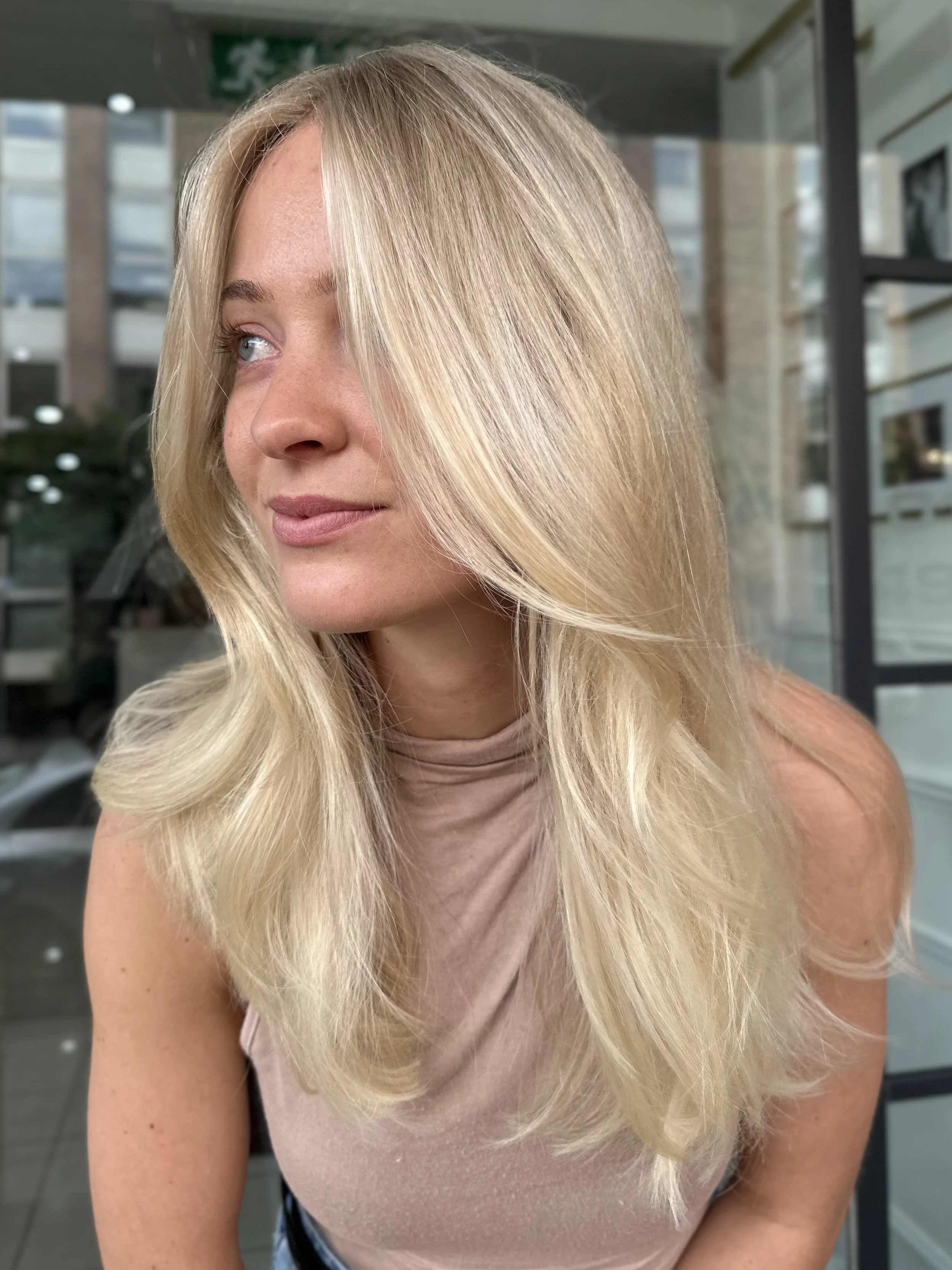 Every blonding package includes a full treatment journey: pre-colour protection, in-colour bond support, and a tailored post-colour mask. Bespoke foil placement, any toners required, basin blonding, and a precision cut & signature styling finish are all included.